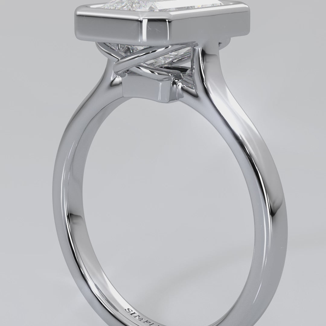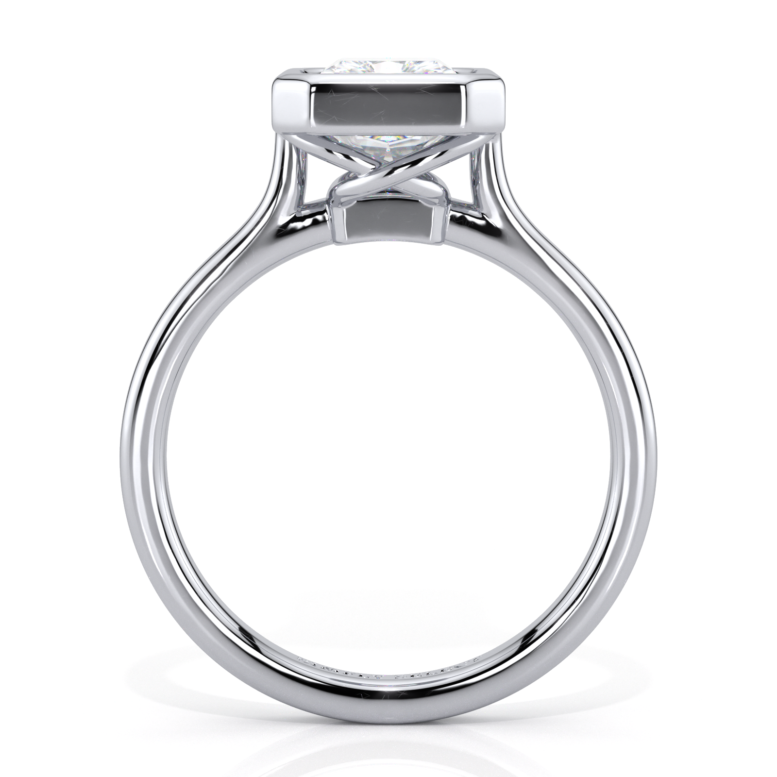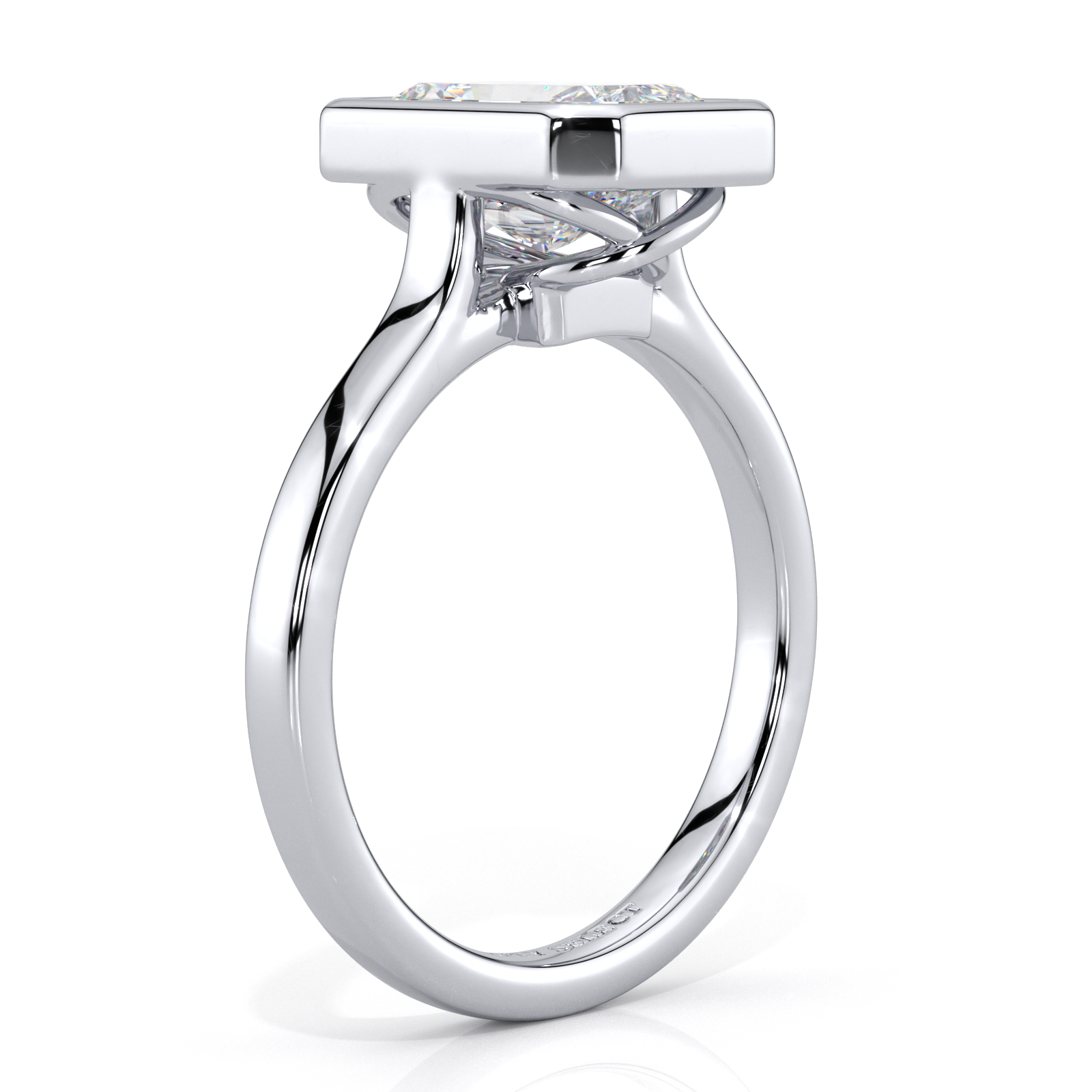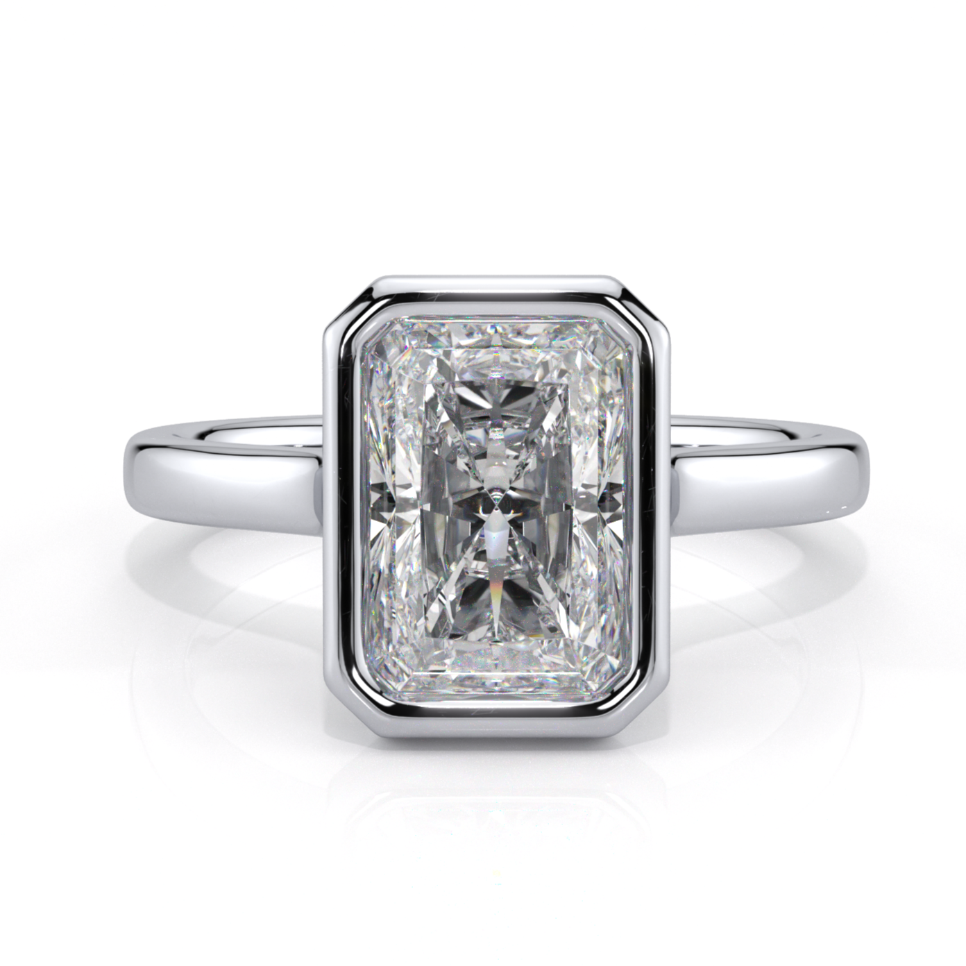 This timeless engagement ring features a radiant cut lab-grown diamond center stone, beautifully bezel-set on a sleek, simple solitaire setting. The clean, modern design highlights the diamond's brilliance, offering an elegant and understated look that is perfect for a sophisticated, lasting symbol of your love.