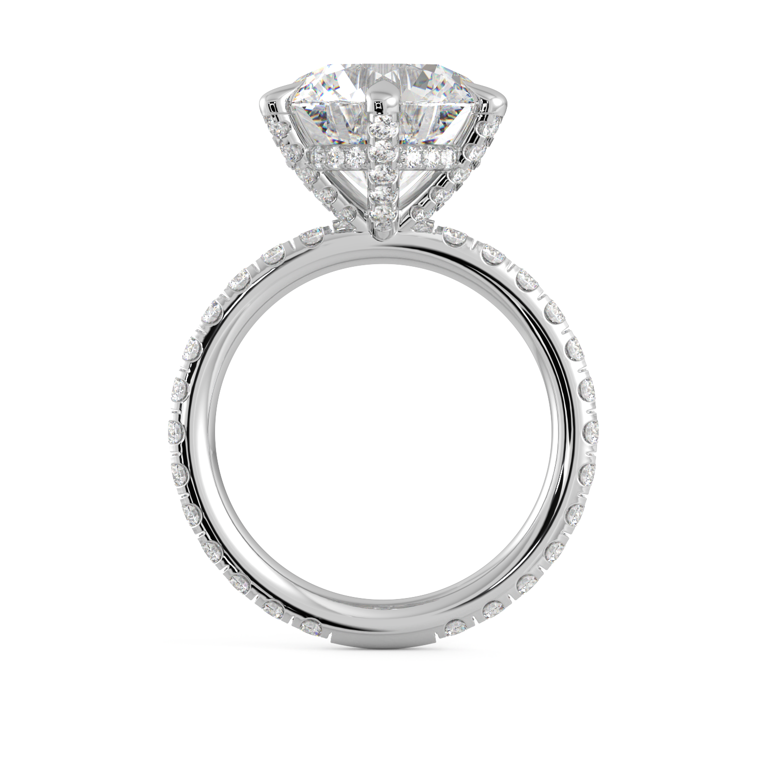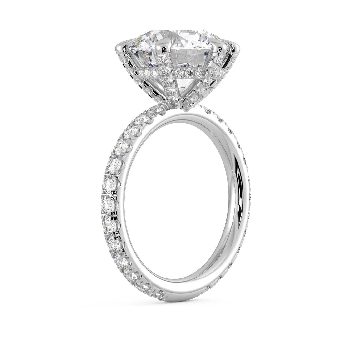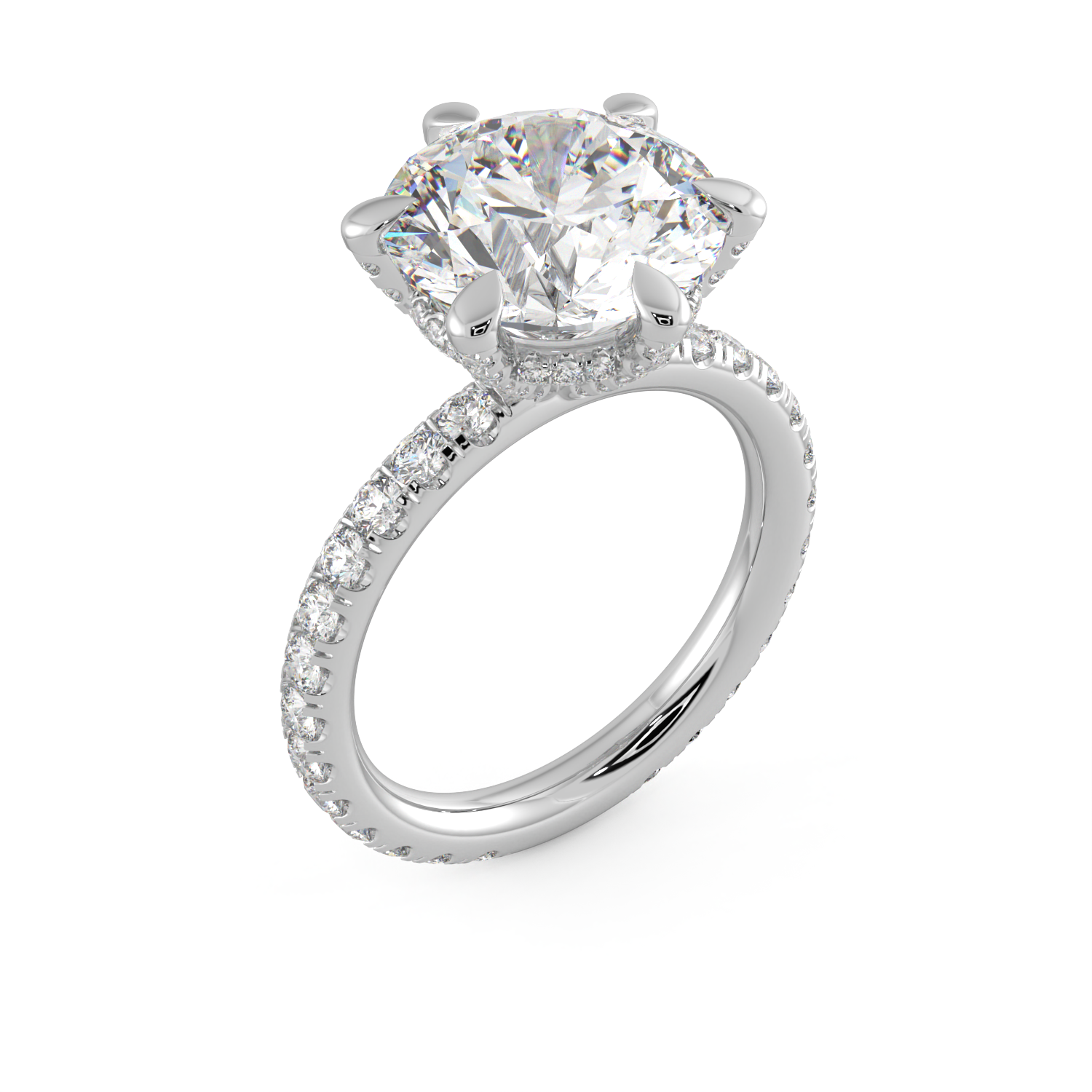 Introducing our exquisite Ariel Engagement Ring, a true marvel of elegance and sophistication. This stunning ring showcases a round lab-grown IGI certified center stone, delicately set on a six-prong pave with diamonds and hidden halo. The 2mm diamond band adds a touch of brilliance and complements the center stone beautifully. With its intricate detailing and timeless design, this ring is a symbol of everlasting love and commitment. Capture hearts and create memories with this mesmerizing piece that radiates grace and charm.