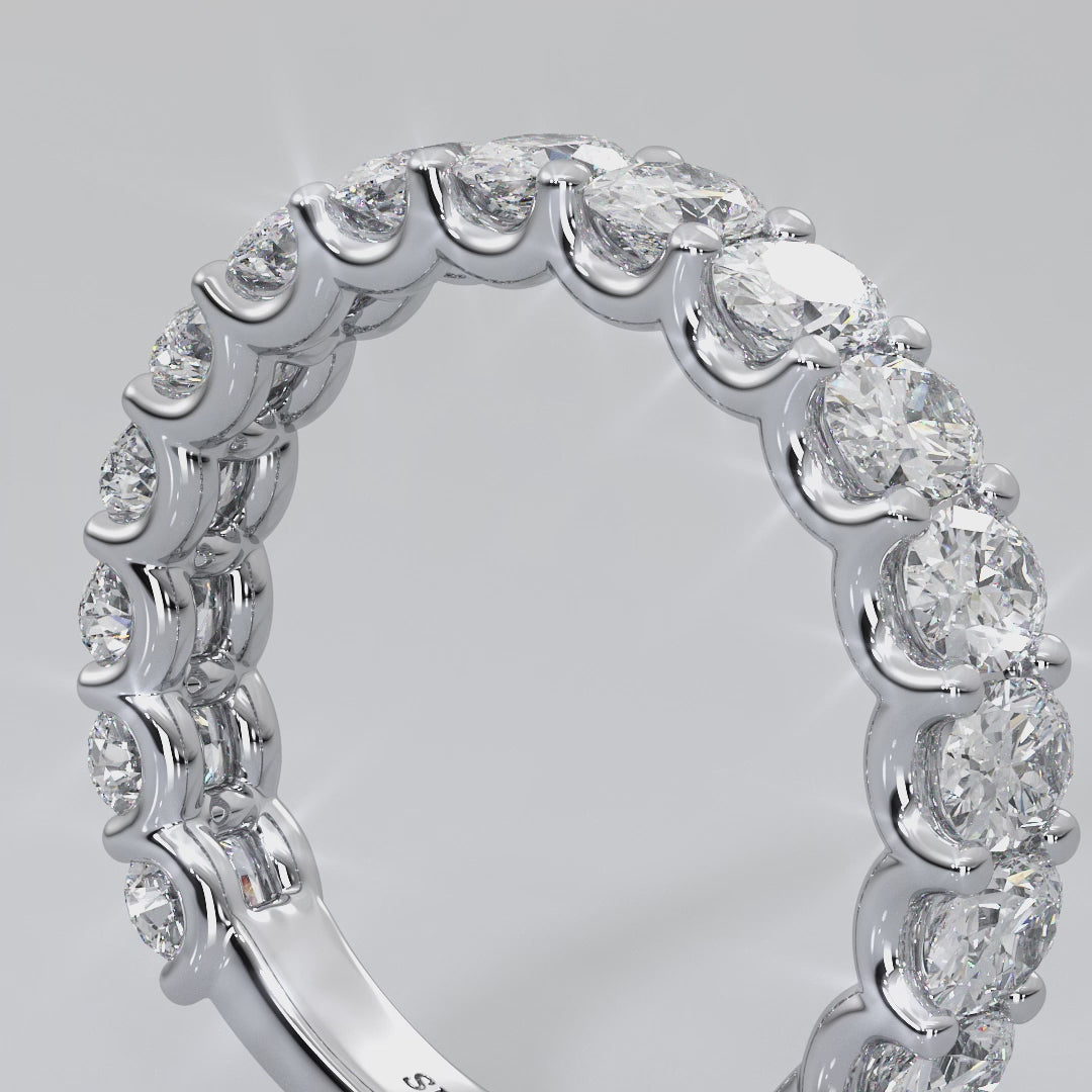 This exquisite women's wedding band showcases oval cut lab-grown diamonds set in a unique U-shaped design, creating a stunning, fluid curve that perfectly complements the finger. The elegant arrangement of the diamonds offers a timeless, sophisticated look, making this band the perfect symbol of enduring love and commitment. Match this wedding band with our Desire or Giselle Setting.