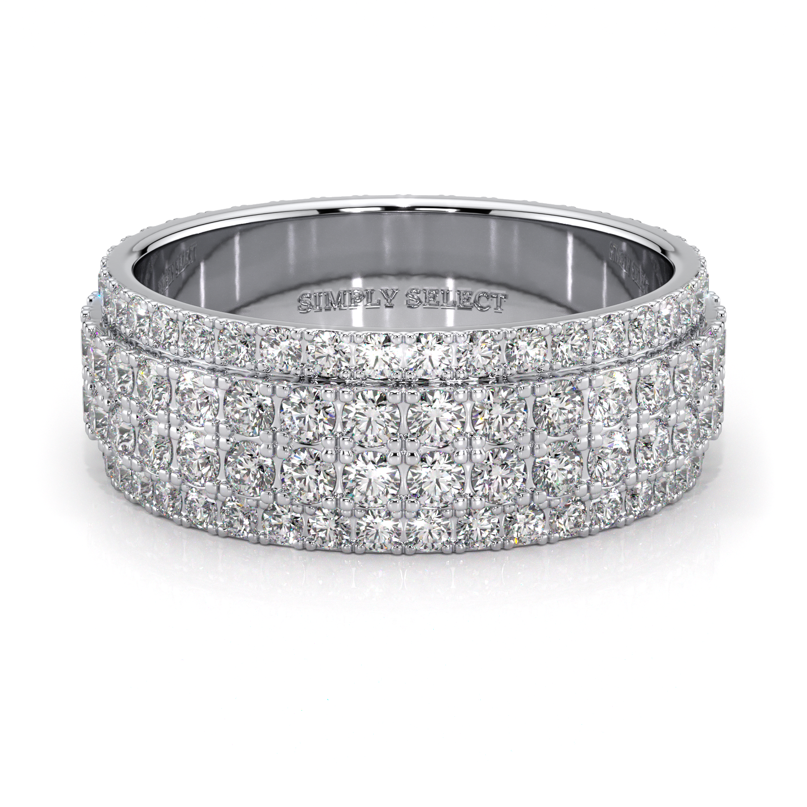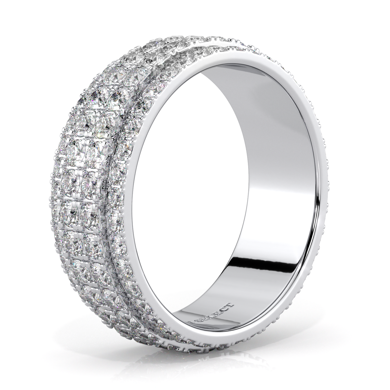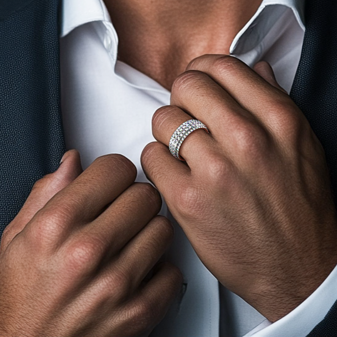 Turn heads with this bold 7mm wedding band, fully iced out with four rows of brilliant lab-grown diamonds in D/E color, VVS clarity. Designed for maximum sparkle and impact, this ring shines from every angle—making it the ultimate statement piece for modern luxury.