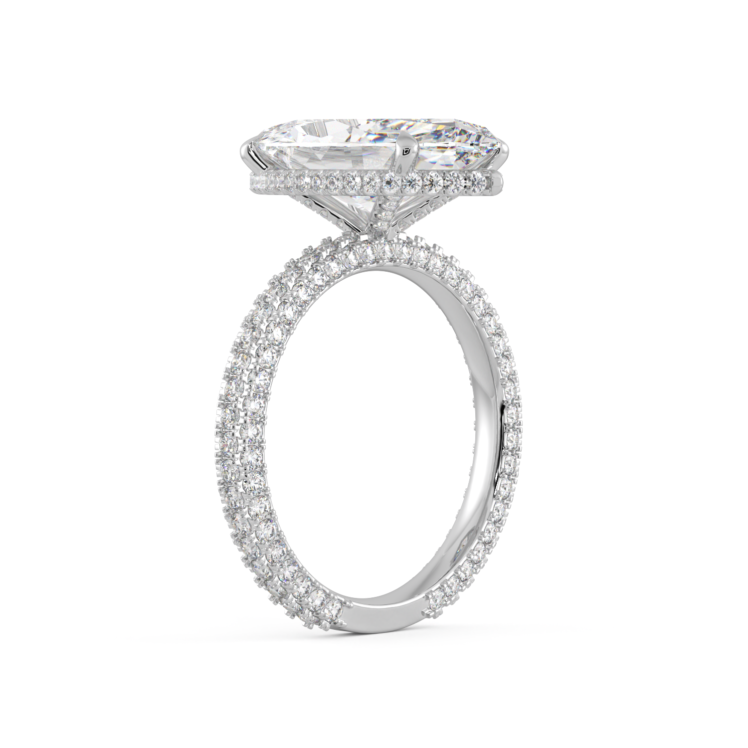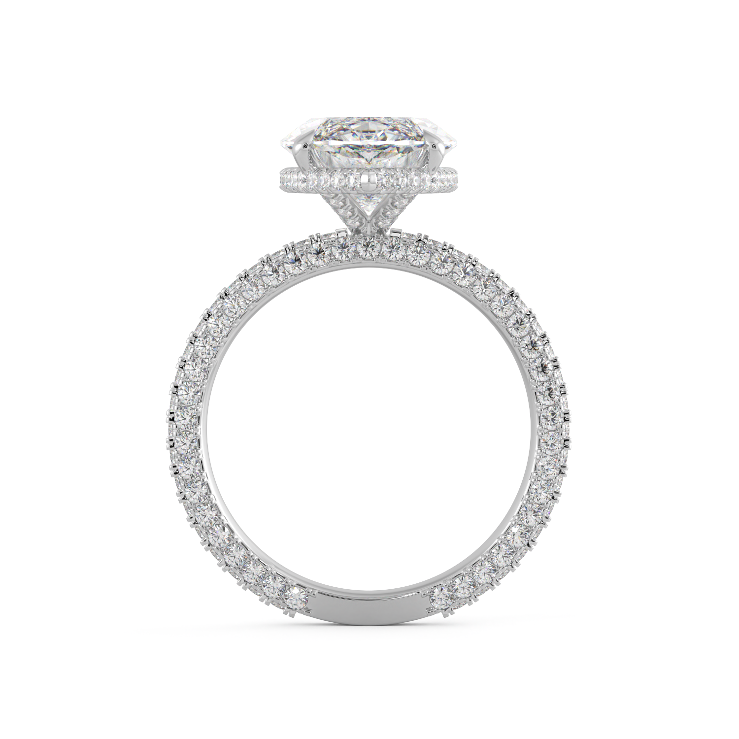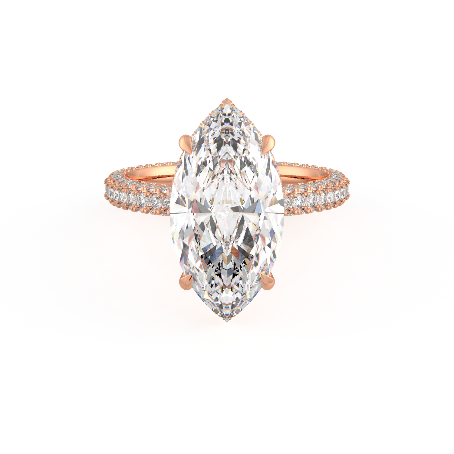 Introducing our exquisite Camille Engagement Ring, a dazzling testament to love and romance. This stunning ring features a marquise lab-grown center stone, delicately set on a micro-pave three-row band adorned with diamonds on the prong and hidden halo. The intricate design of this ring ensures maximum sparkle from every angle, making it an absolute must-have for any future fiancé. With its captivating beauty and timeless elegance, this ring is the perfect choice for celebrating your love and embarking on a journey together.