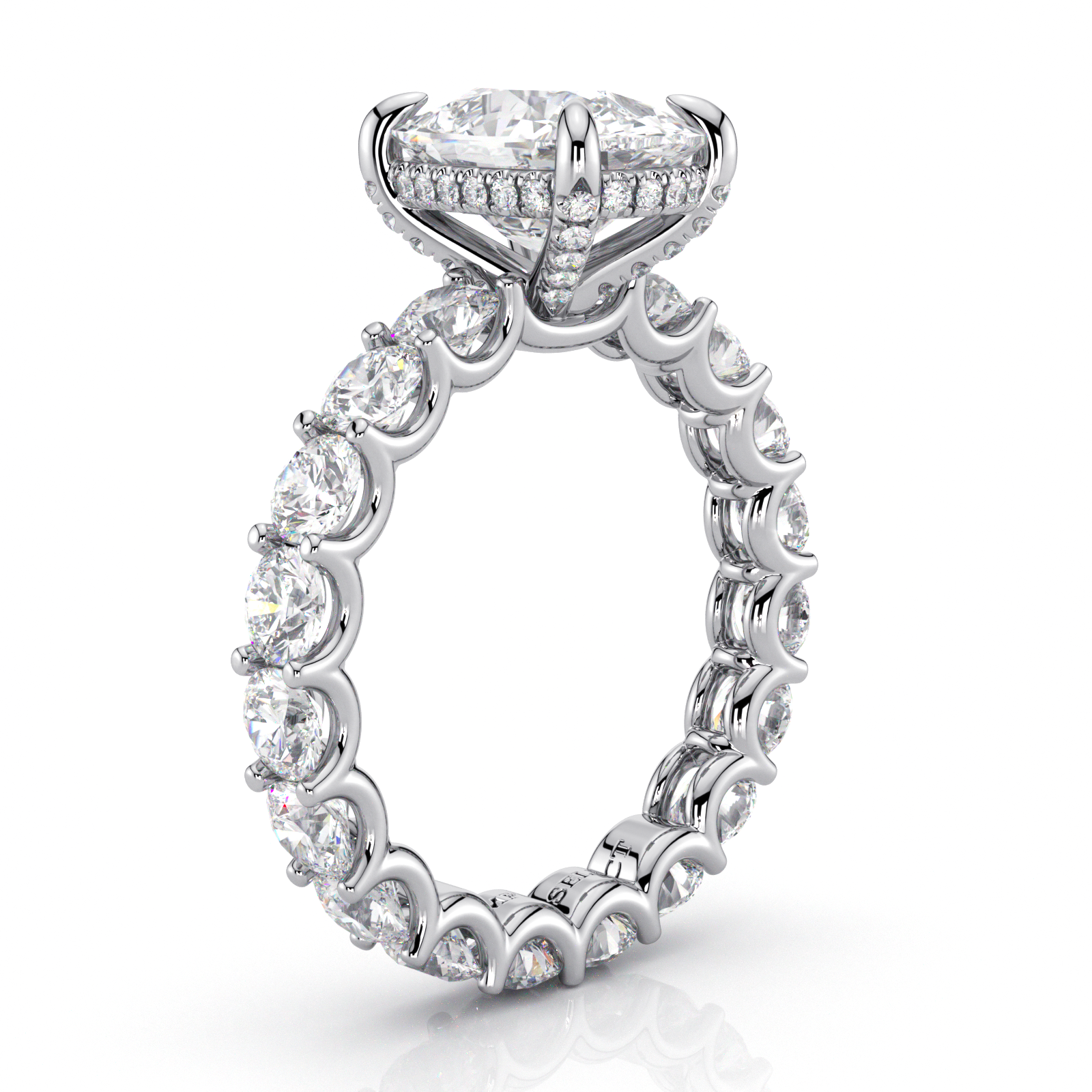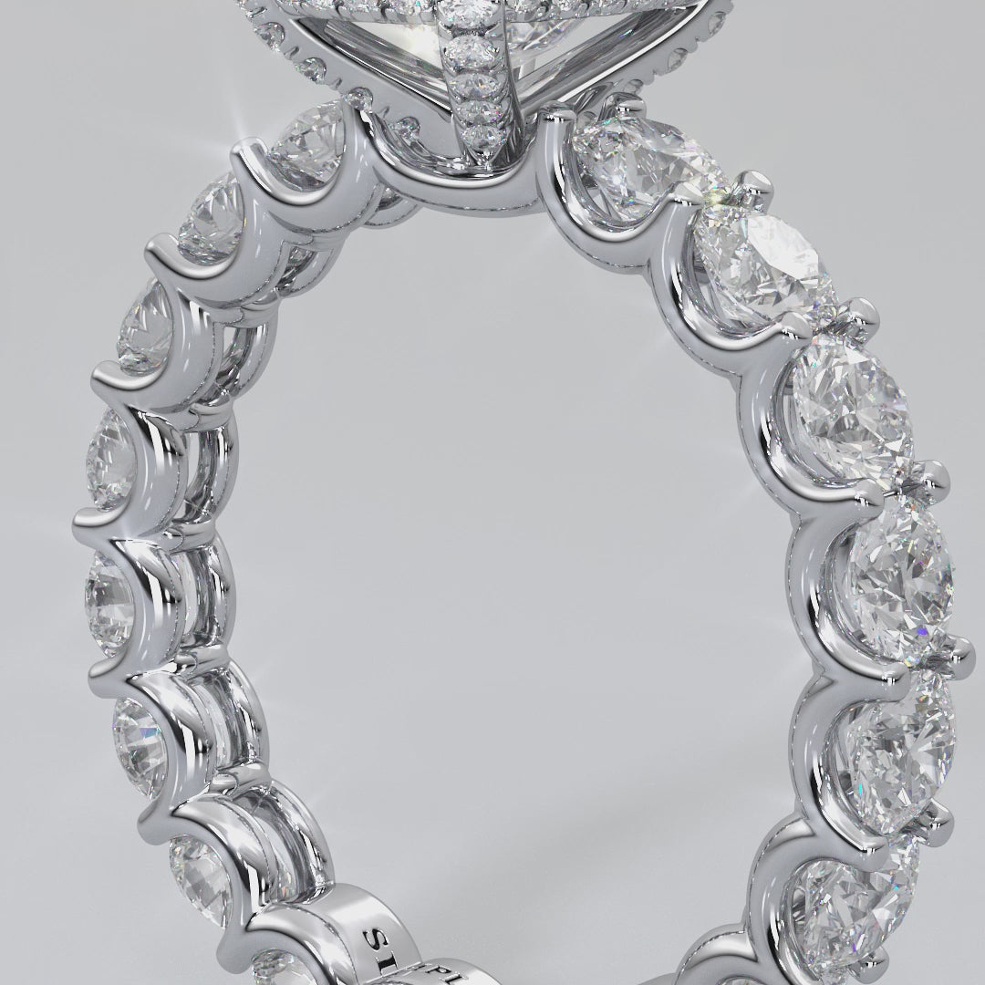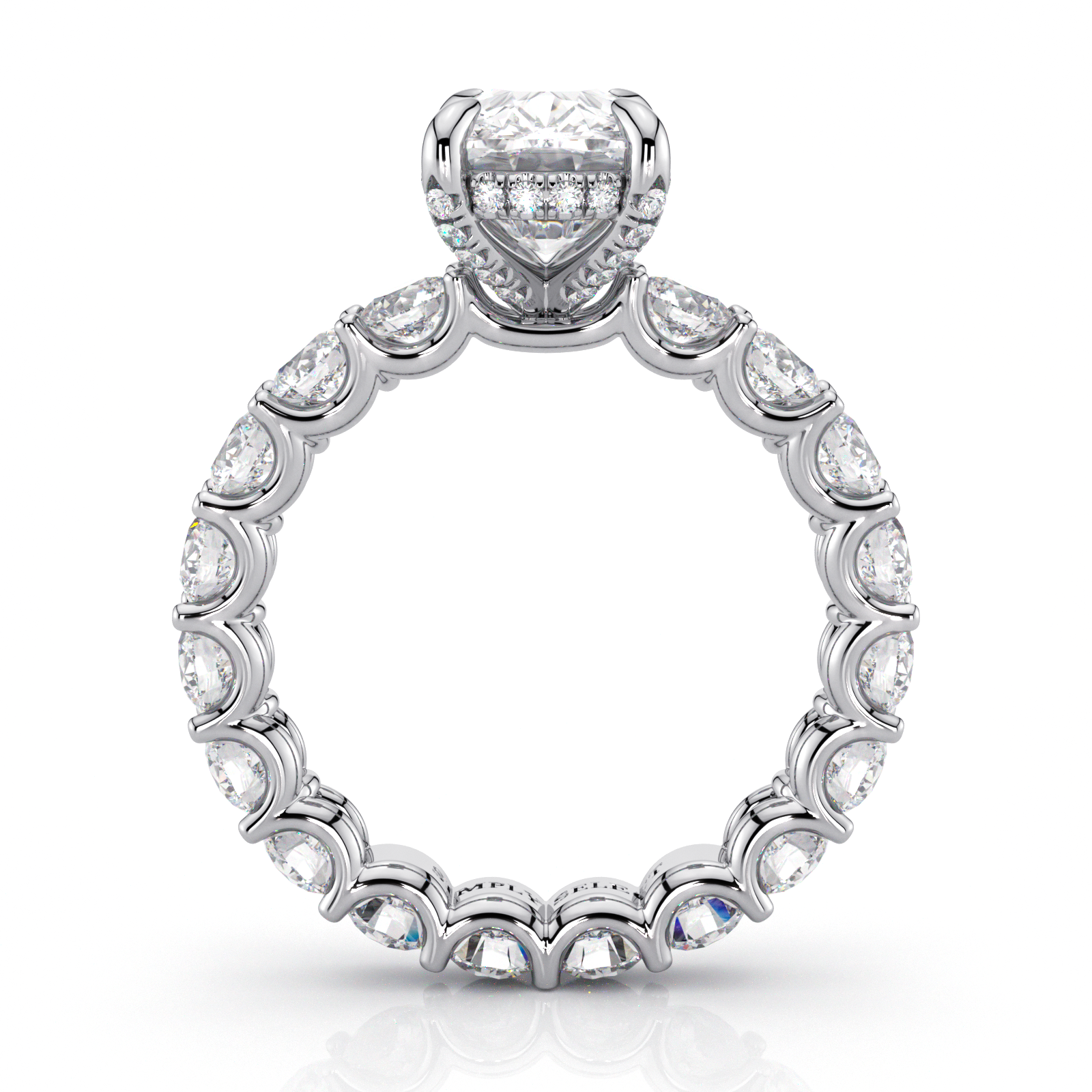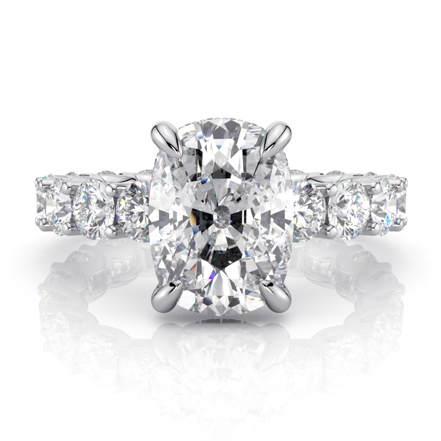Introducing the Delilah ring, featuring an Elongated Cushion-Cut IGI certified lab-grown diamond center stone. Set in U-shaped prongs on a 3.5mm band, this ring showcases .15ct diamonds in an eternity style for a bold, elegant look. Perfect for those who seek timeless sophistication with a modern edge.