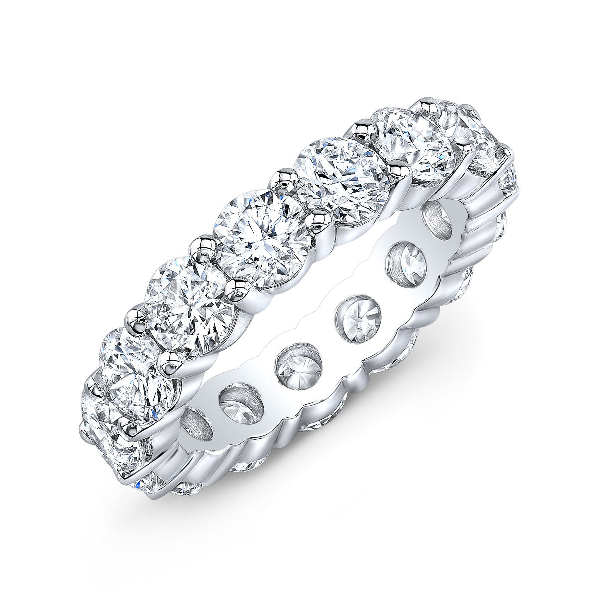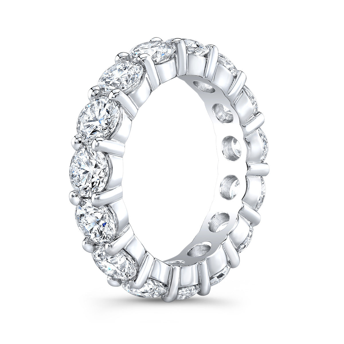 This Round Cut Diamond Eternity Wedding Band ring is a MUST HAVE. Elegant and gleaming Round cut diamonds that goes all the way around is beautifully set on this shared prong design. All high quality lab grown D/E VVS quality diamonds for unreal sparkle.