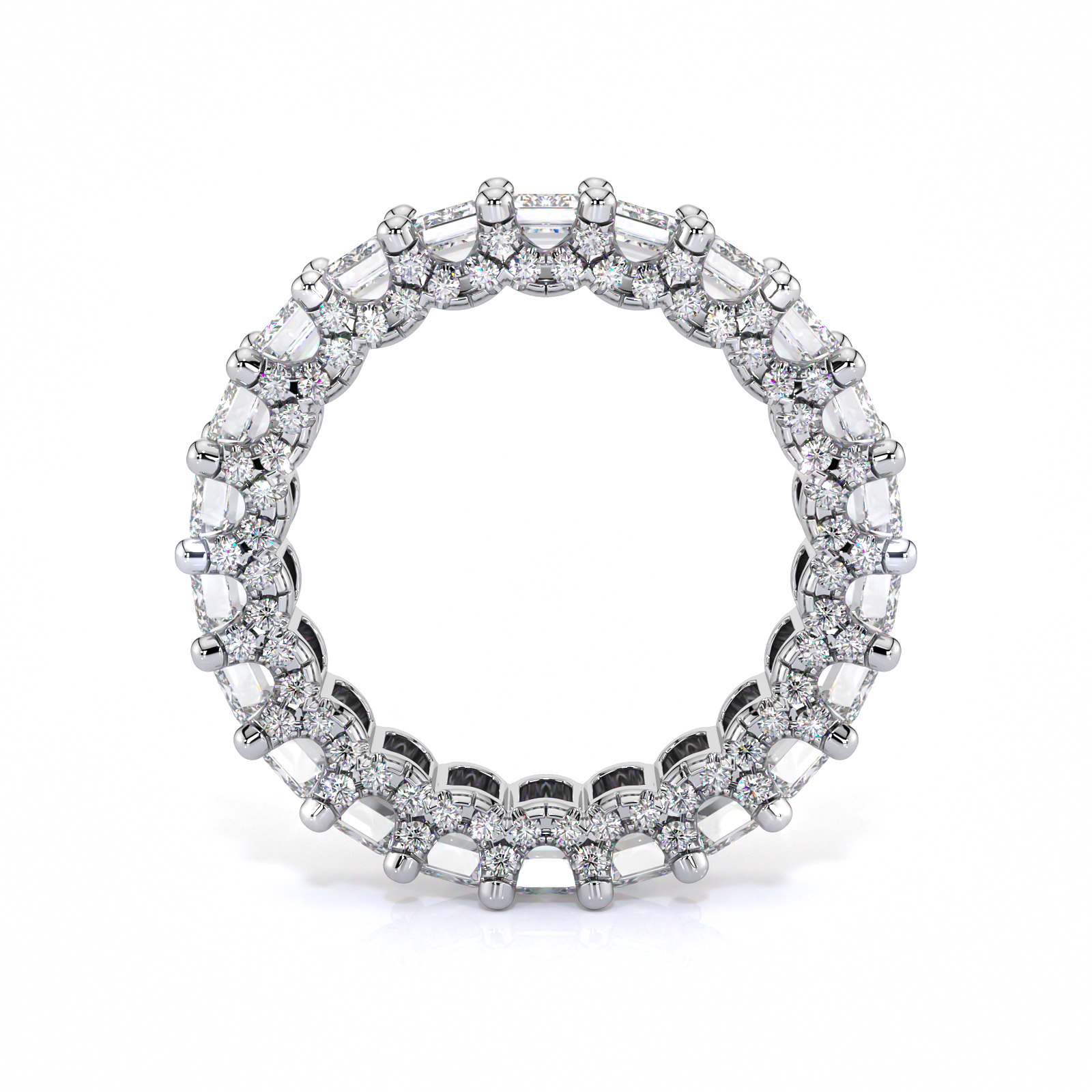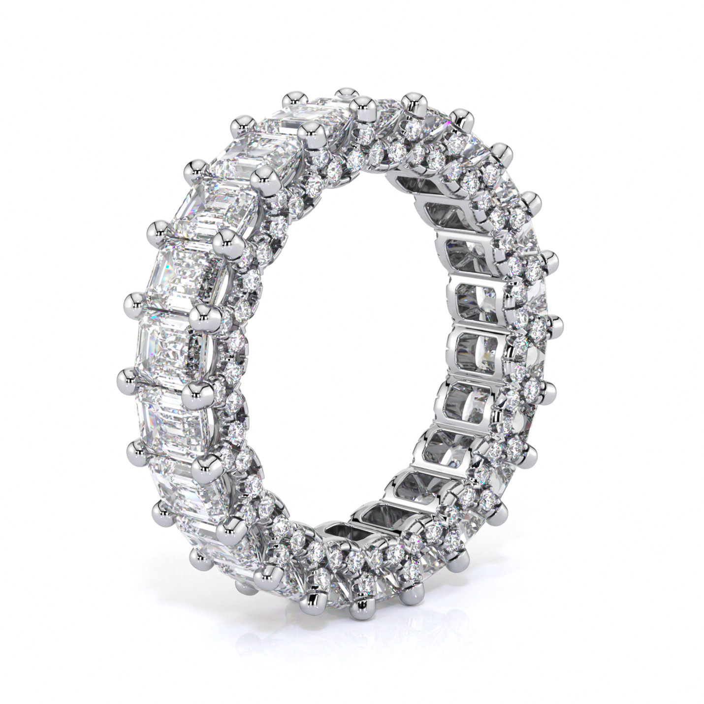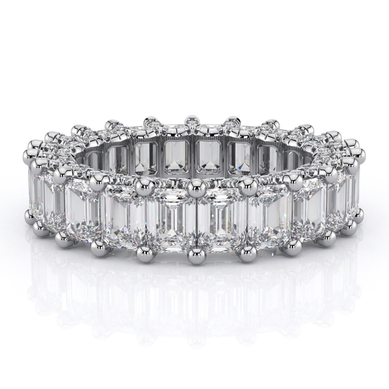 Celebrate eternal love with our Emerald Eternity Wedding Band, featuring vibrant emeralds in 5CT total weight with micro pave diamonds on the U shape prongs. Each band is crafted from 14K/18K white, yellow, or rose gold, or platinum, ensuring timeless elegance and comfort. Each Emerald is .25CT in flawless D/E VVS quality lab grown diamonds.