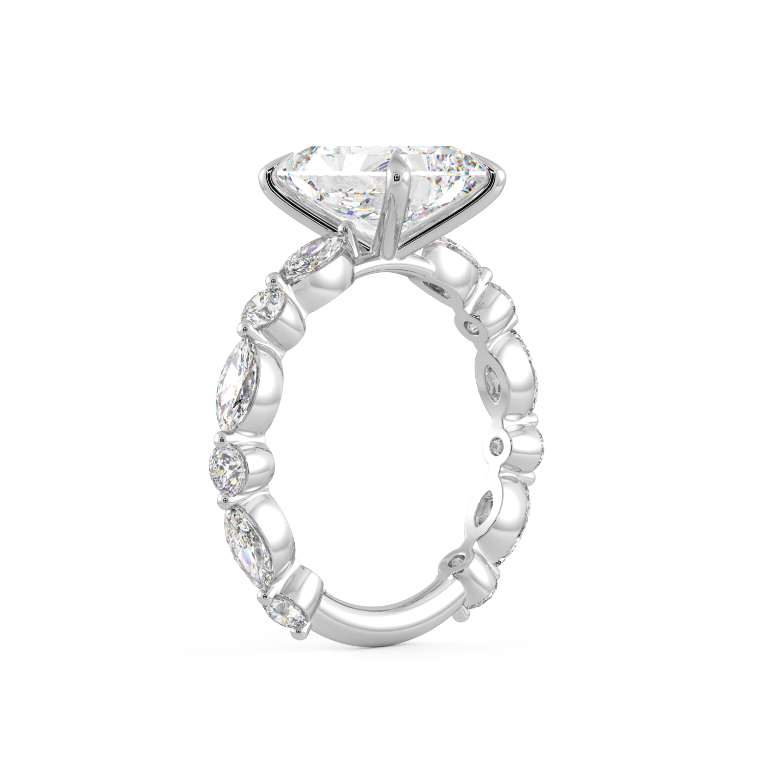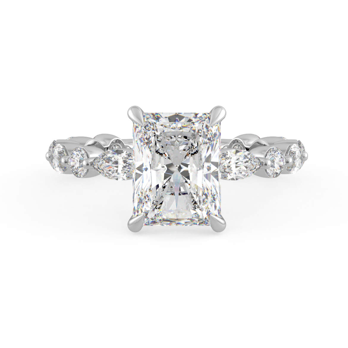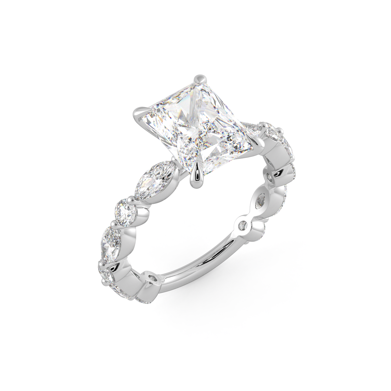 Introducing our stunning Gigi Engagement Ring, a captivating symbol of love and sophistication. This beautiful ring features a radiant lab-grown center stone, elegantly set on an alternating marquise and round shape setting.