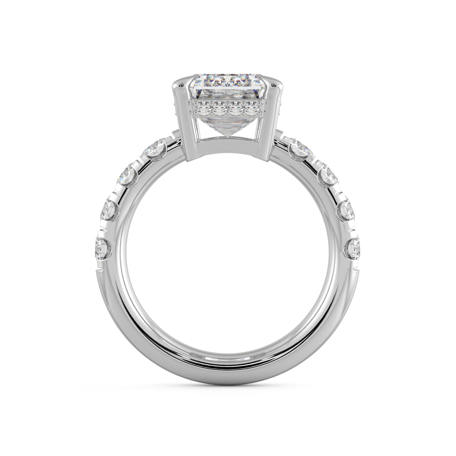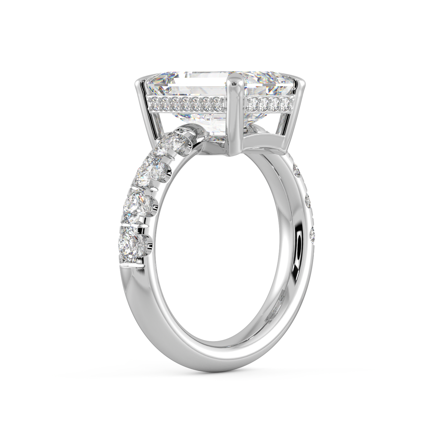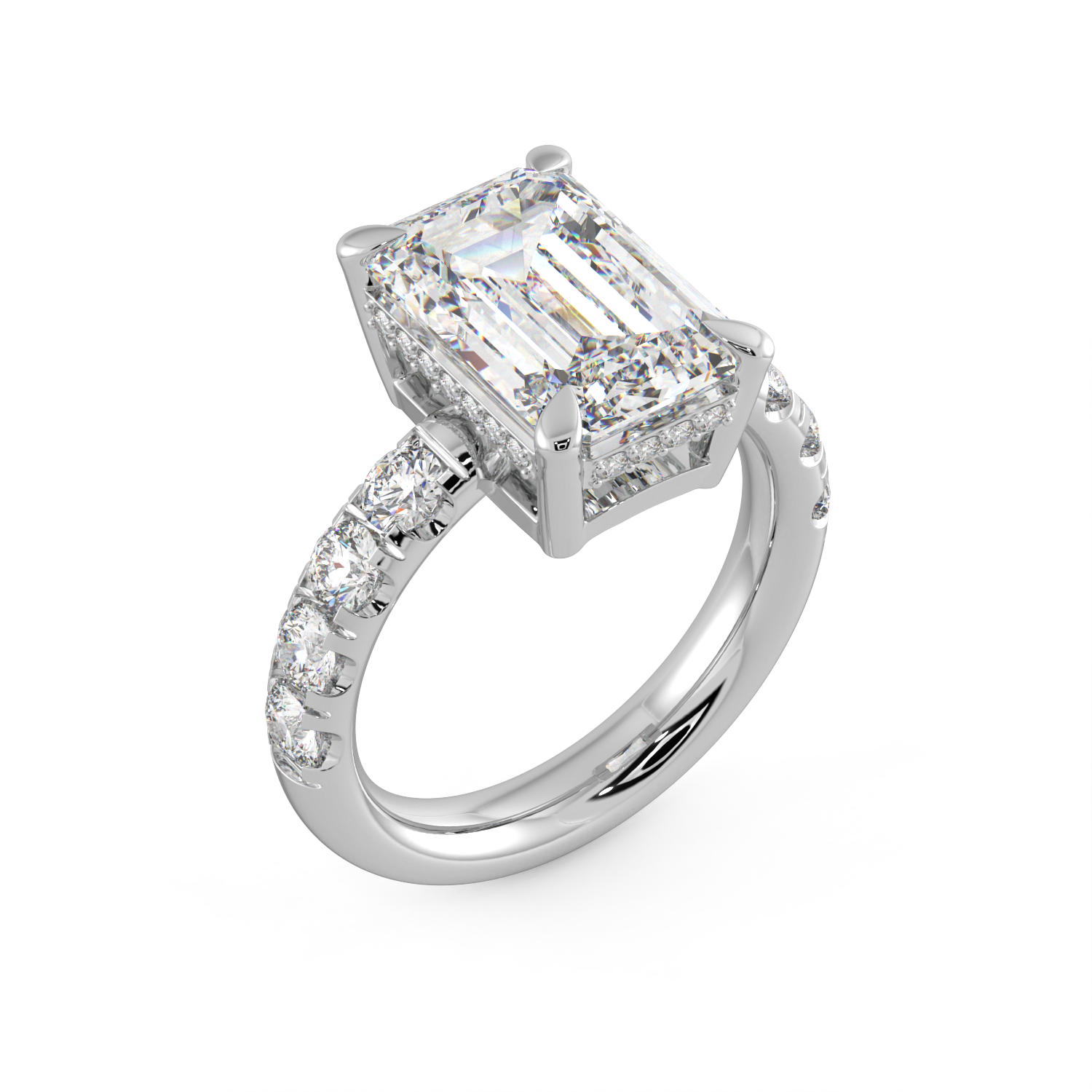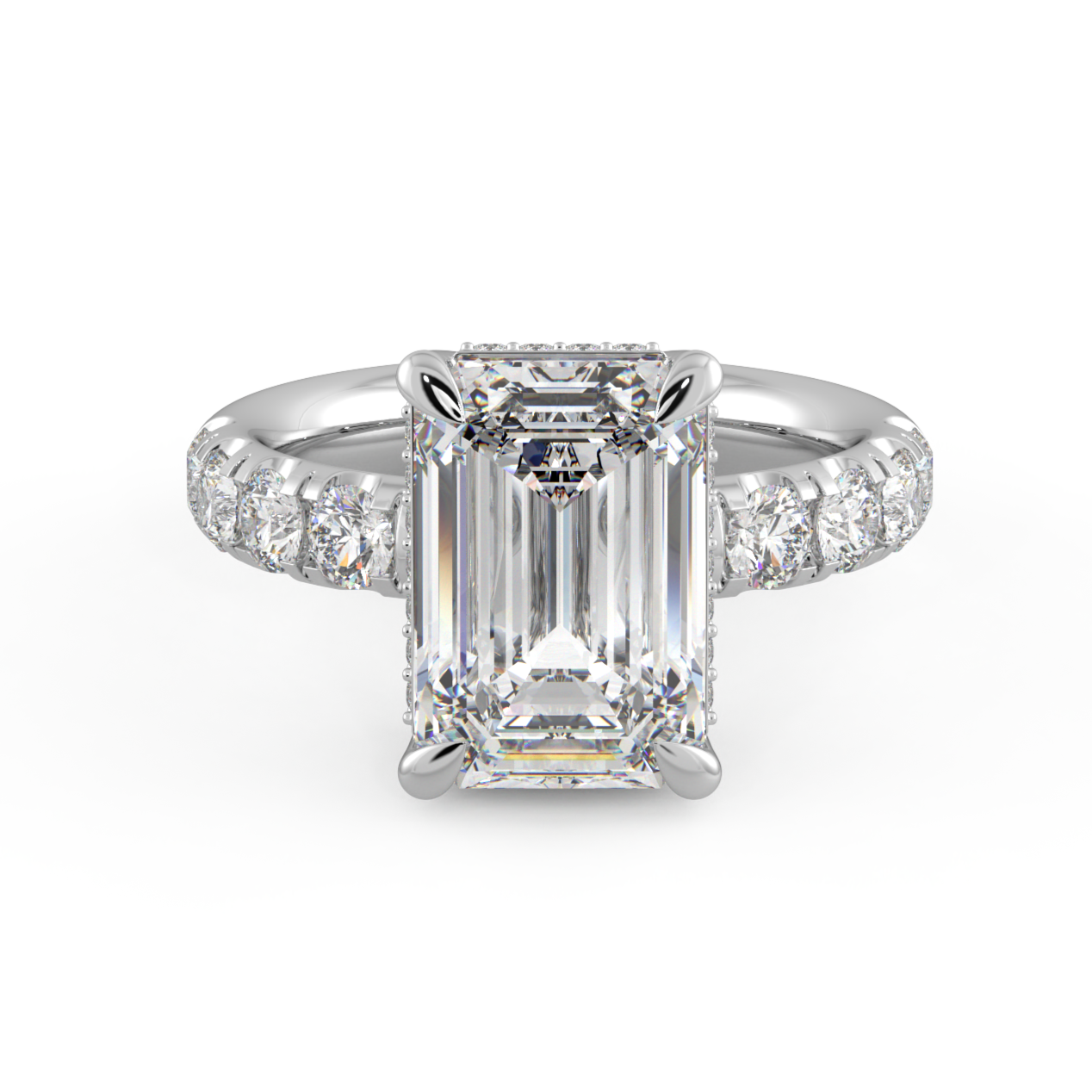 Introducing our exquisite Hailey Ring, a breathtaking symbol of timeless elegance and sophistication. At its center shines an emerald lab-grown IGI certified diamond, delicately set on a 4-prong basket setting with a hidden halo, enhancing its brilliance and allure.
