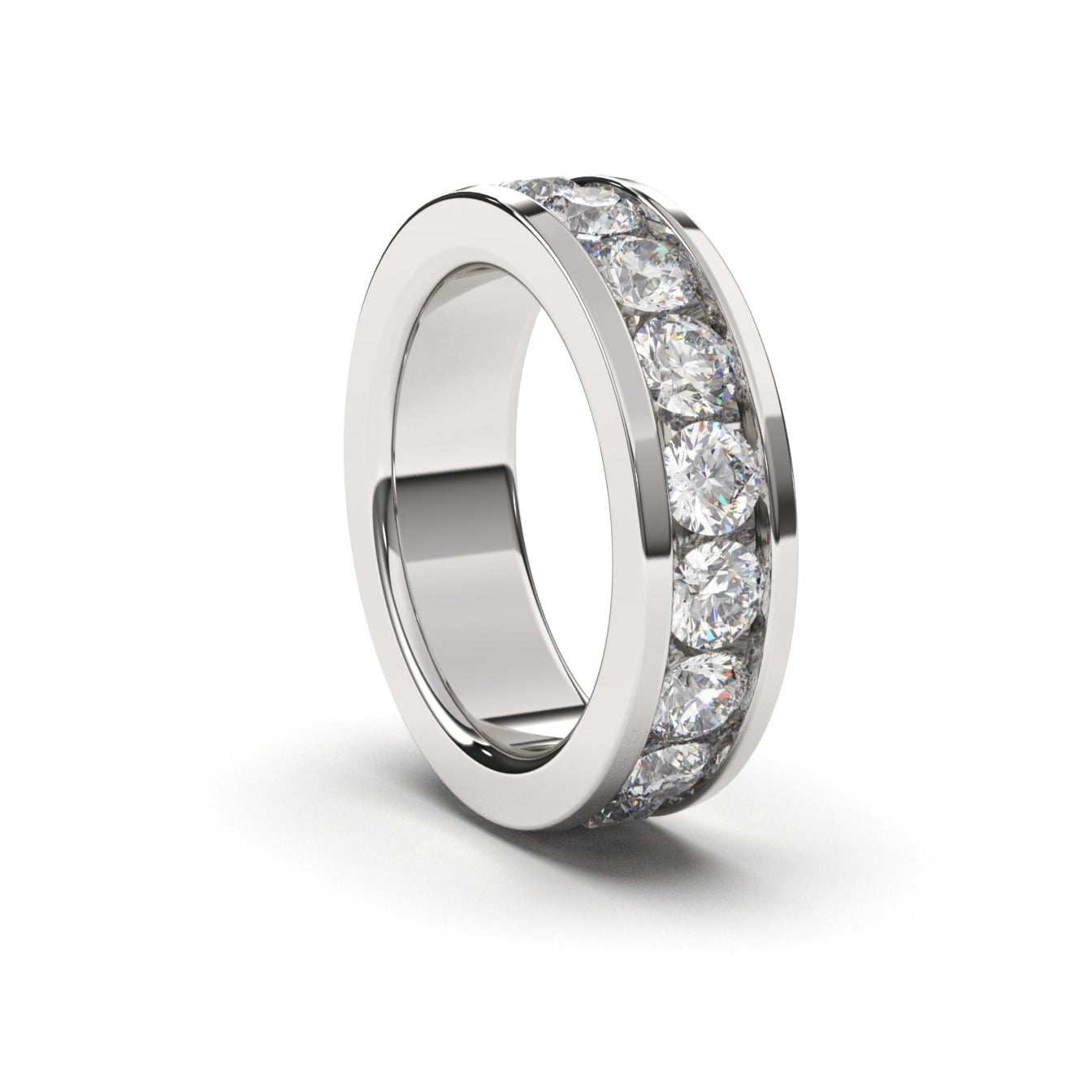 Introducing the Hudson Eternity Diamond Band: a symbol of timeless elegance and sophistication. With a substantial 7mm thickness and dazzling 3.5mm diamonds (15 point) totaling 3.25 carats, this band radiates luxury and enduring commitment. Crafted for the modern gentleman, it seamlessly blends classic charm with contemporary flair. Experience the unmatched beauty and craftsmanship of the Hudson Eternity Diamond Band, a testament to everlasting love.