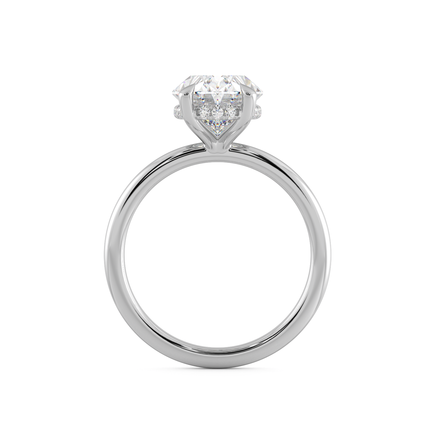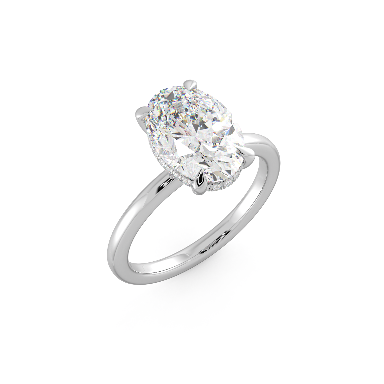 Introducing our timeless Jordan Ring, a classic symbol of understated beauty and sophistication. This elegant ring features an oval lab-grown IGI certified center stone, delicately set in a classic solitaire setting with a hidden halo.
