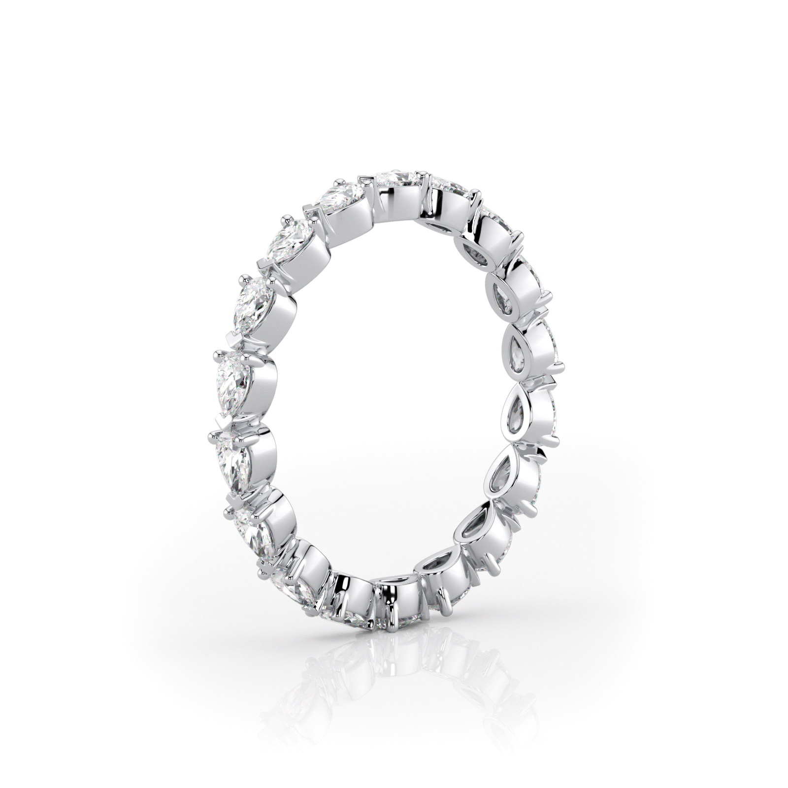The Leah is a striking eternity band featuring a continuous row of elegant pear-shaped lab-grown diamonds in dazzling D/E color, VVS clarity. Designed to maximize brilliance and elongate the finger, this band offers a bold yet timeless look. Perfect as a statement piece on its own or paired with an engagement ring for added drama, the Leah is the ultimate symbol of everlasting sparkle.