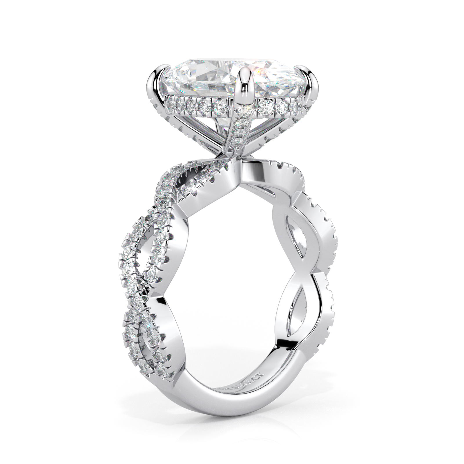 Introducing the Michelle Infinity Oval Engagement Ring, a captivating symbol of everlasting love. Featuring a stunning oval-shaped lab-grown diamond, certified by IGI, this ring boasts an elegant infinity twist setting adorned with 1 carat of E color, VS quality lab-grown diamonds. With a hidden halo beneath the center stone, the Michelle ring radiates beauty and sophistication, embodying the timeless bond between two hearts.