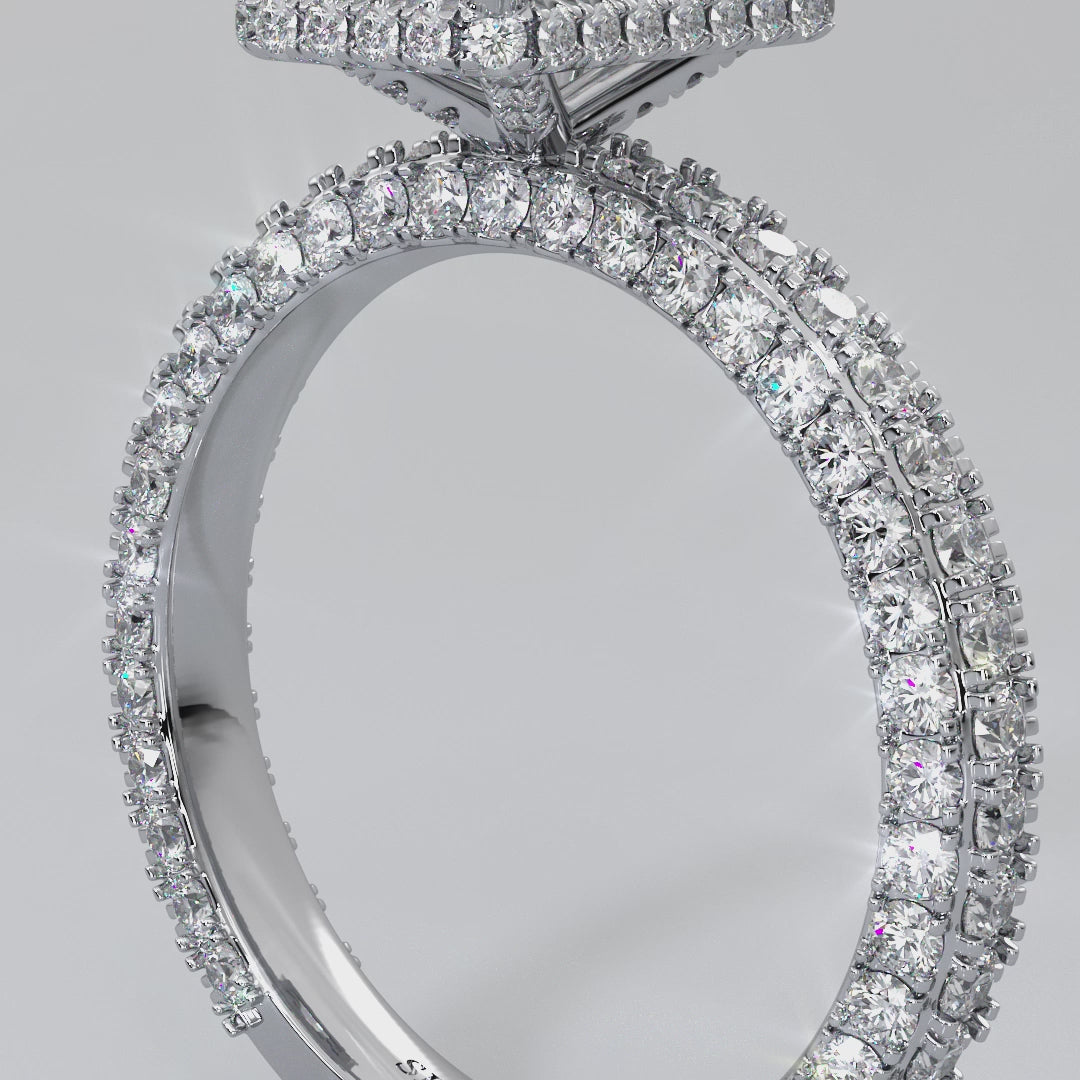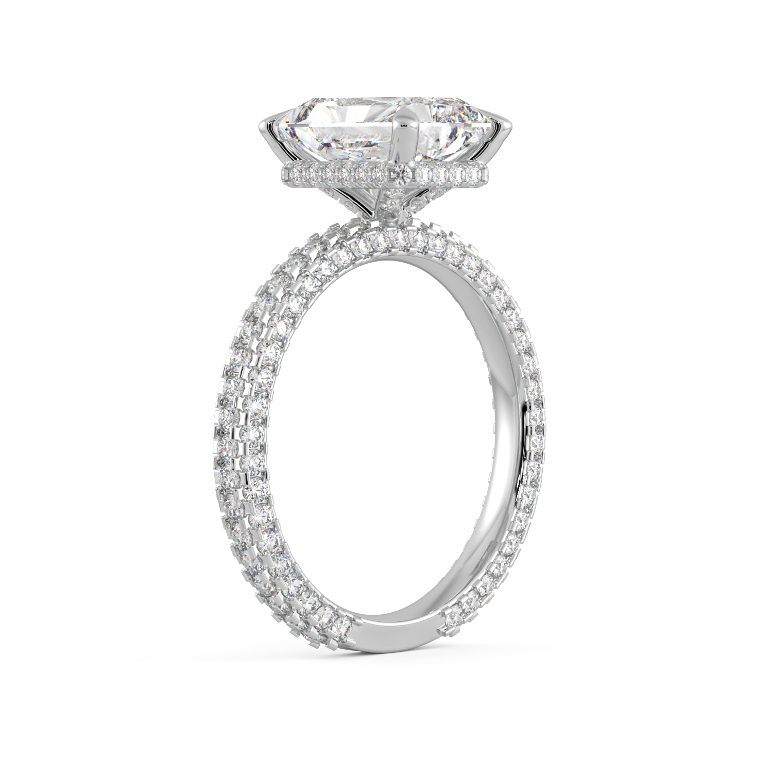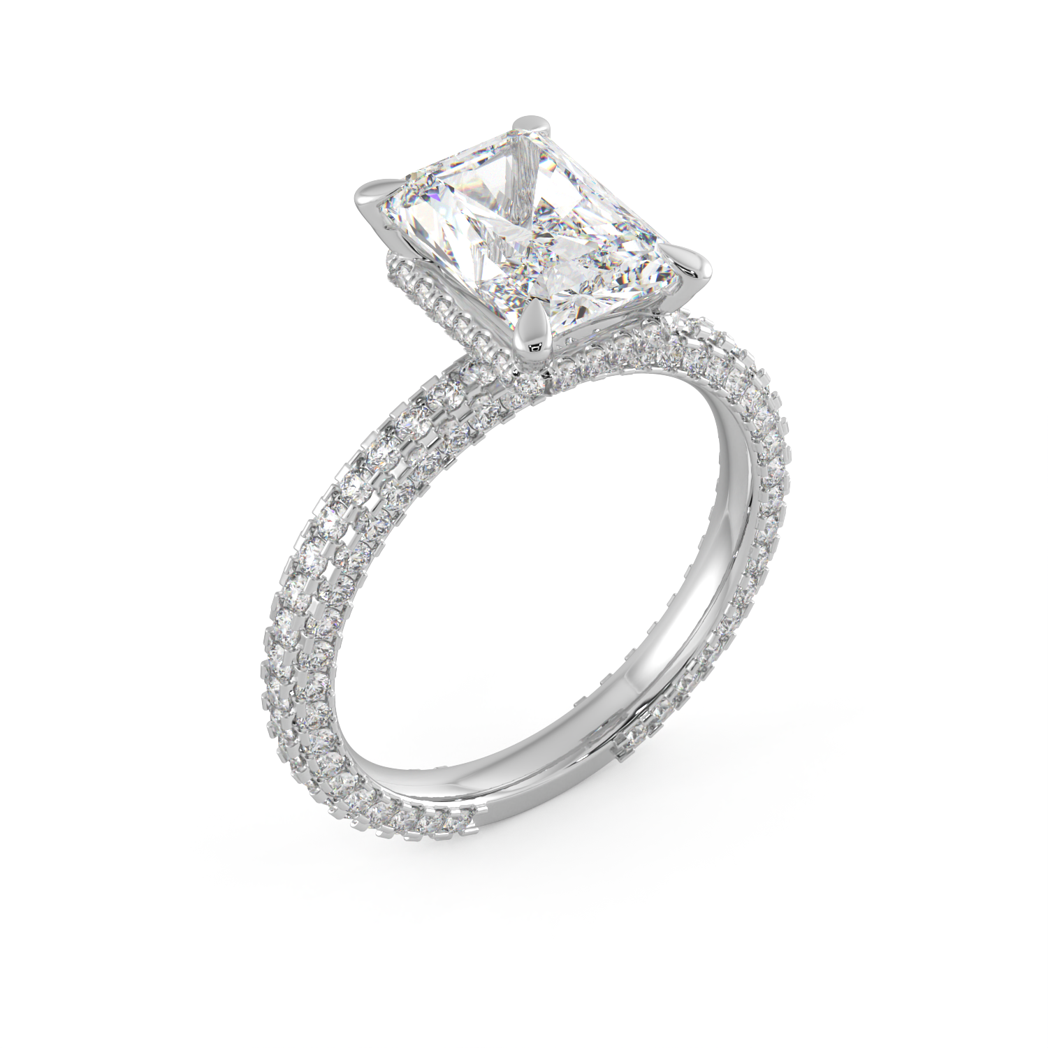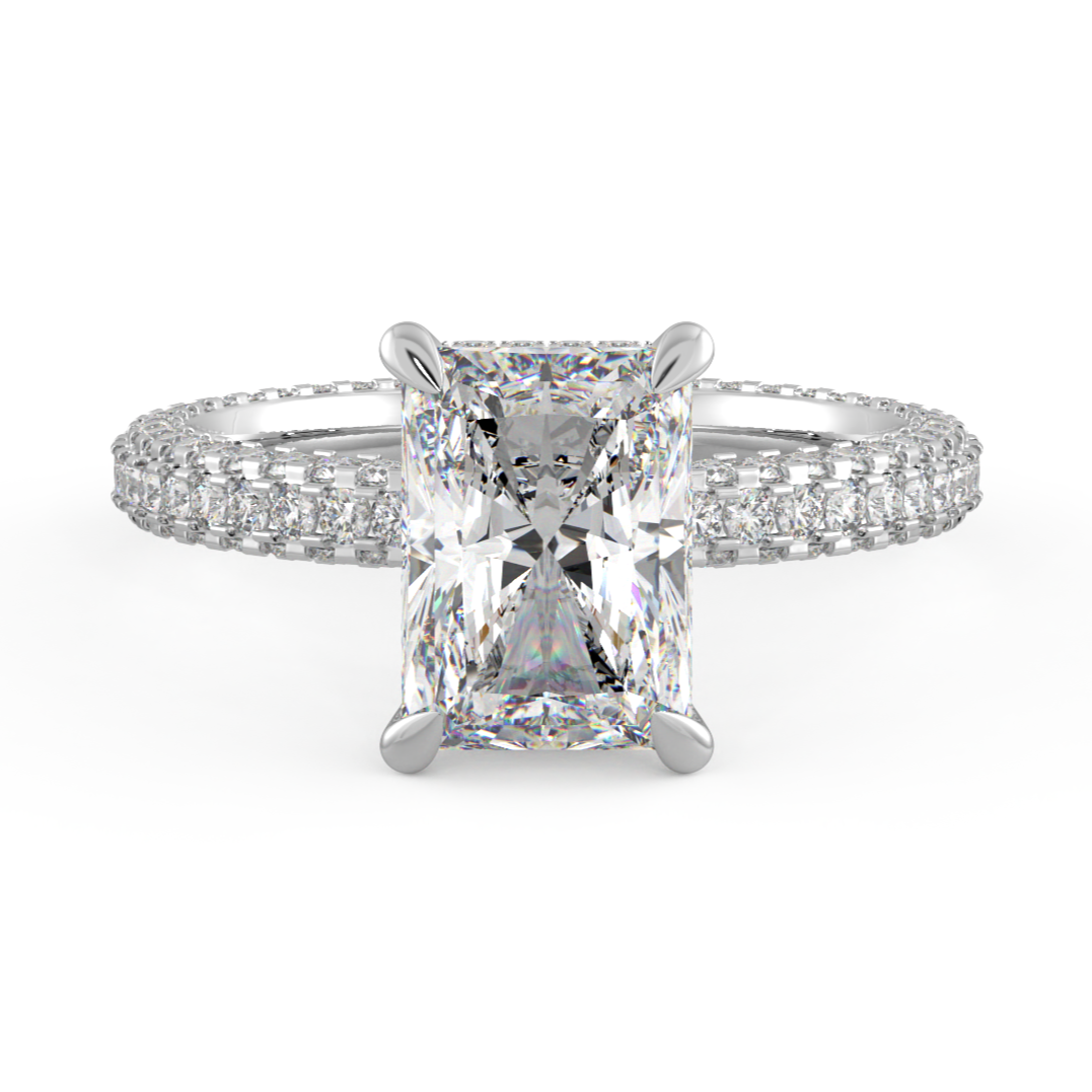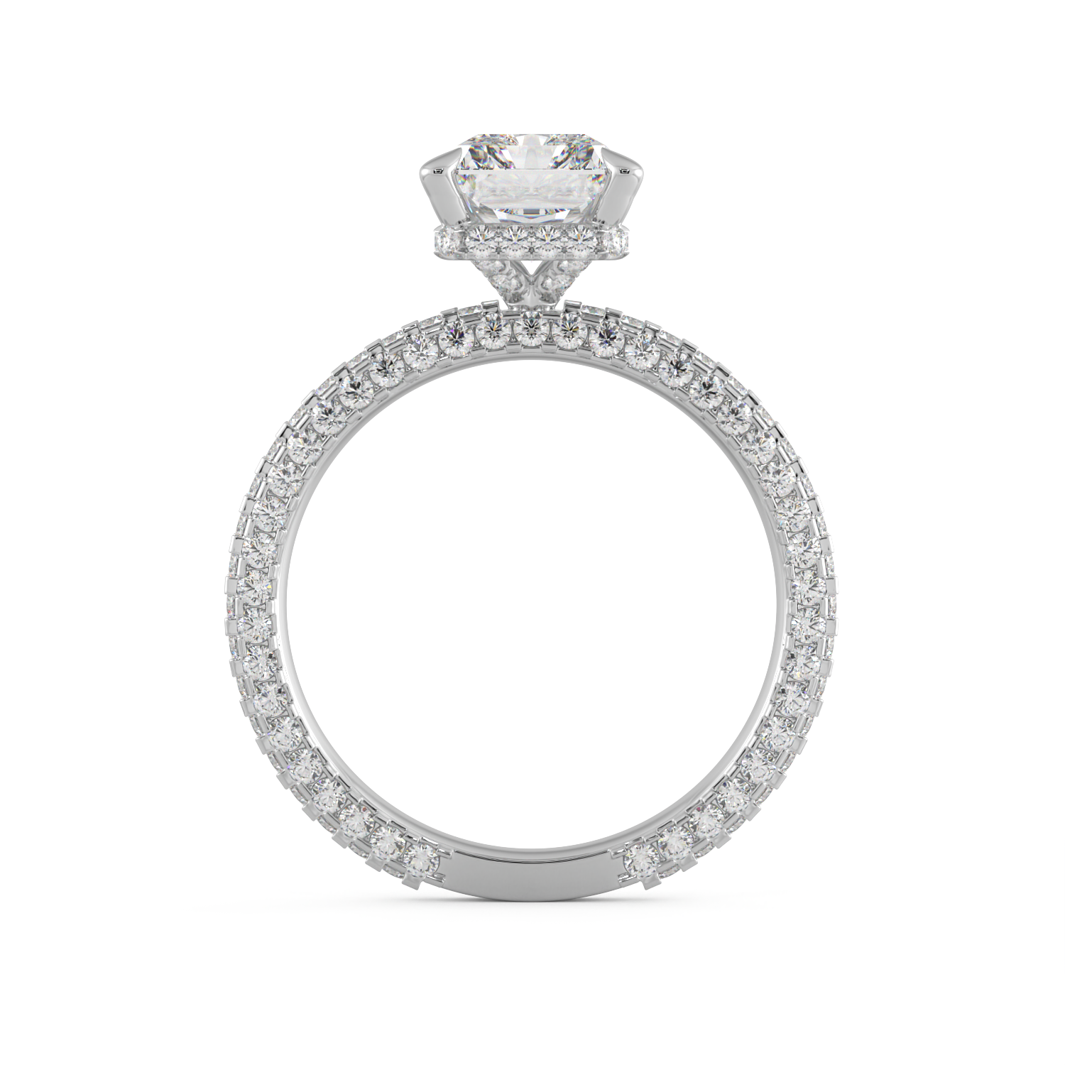 Introducing our stunning Olivia Ring, a mesmerizing symbol of elegance and luxury. This exquisite ring showcases a radiant lab-grown IGI certified diamond, beautifully embraced by a three-row micro pave set diamond setting with a hidden halo.