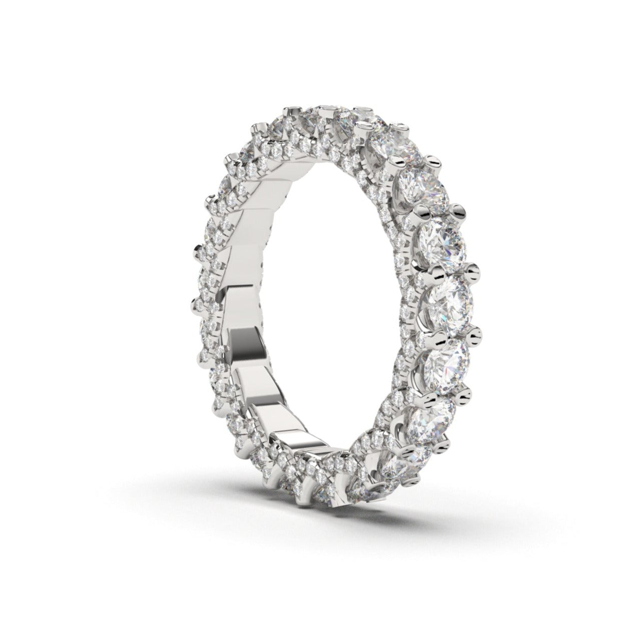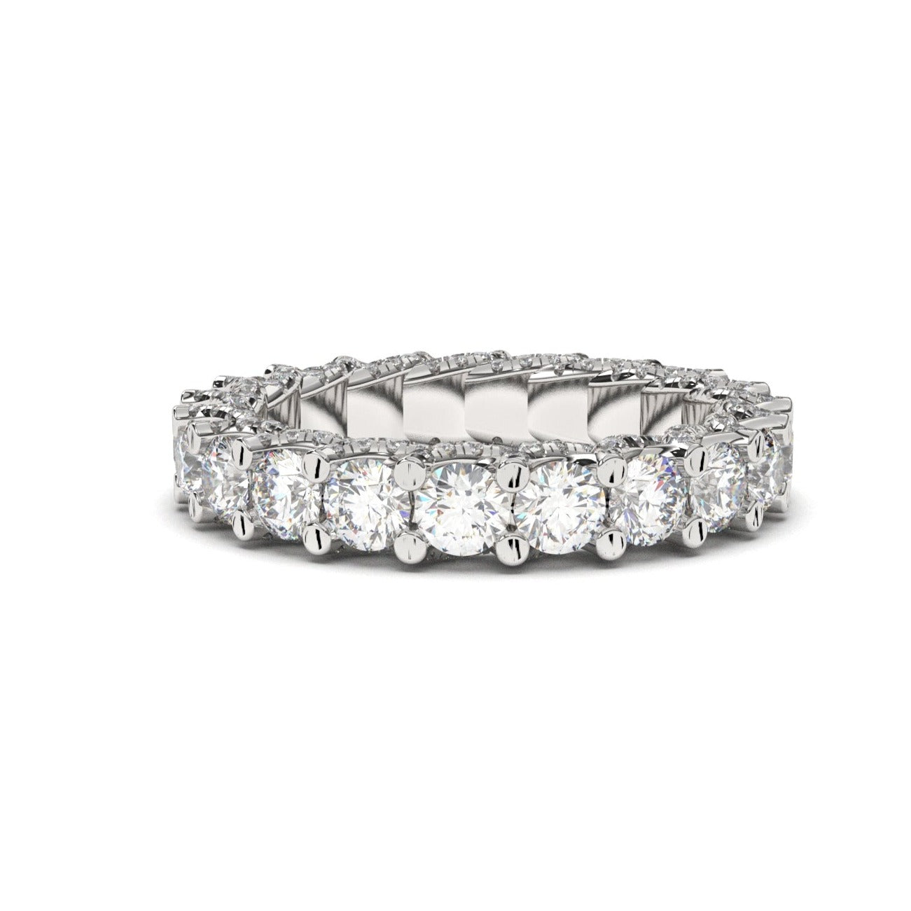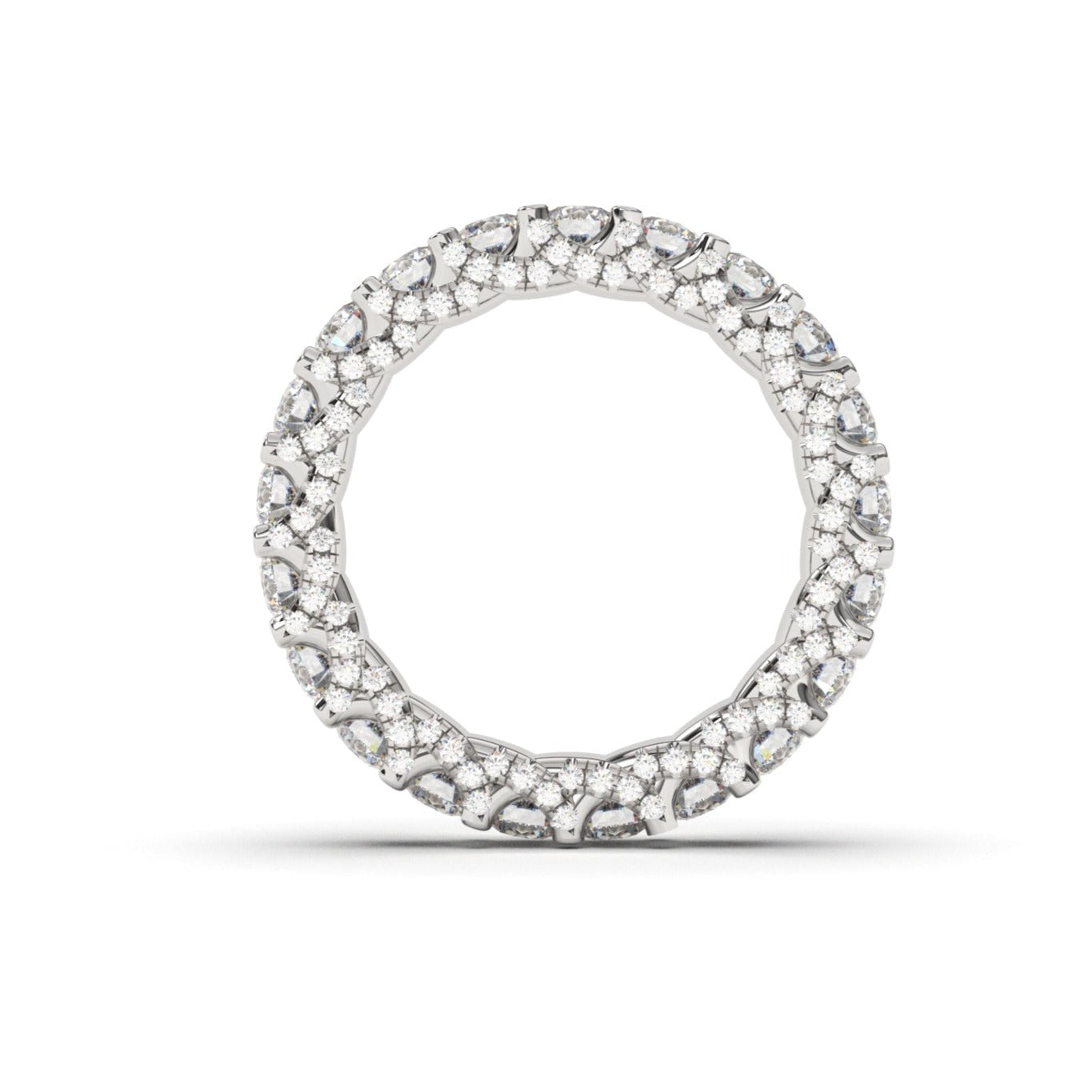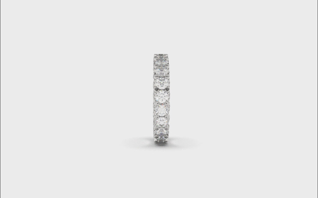 Our gorgeous wedding band 3.75MM thickness featuring 4CT total weight of Lab Grown Diamonds with .15CT round stones in the center and micro pave round diamonds on the prongs. A stunning ring with so much sparkle and a must have wedding band.