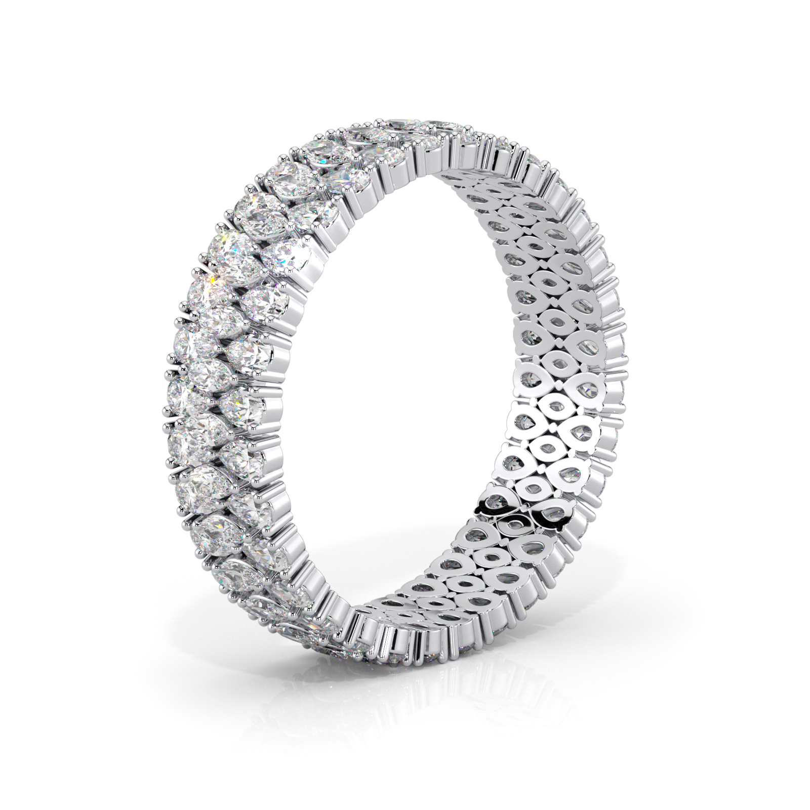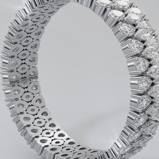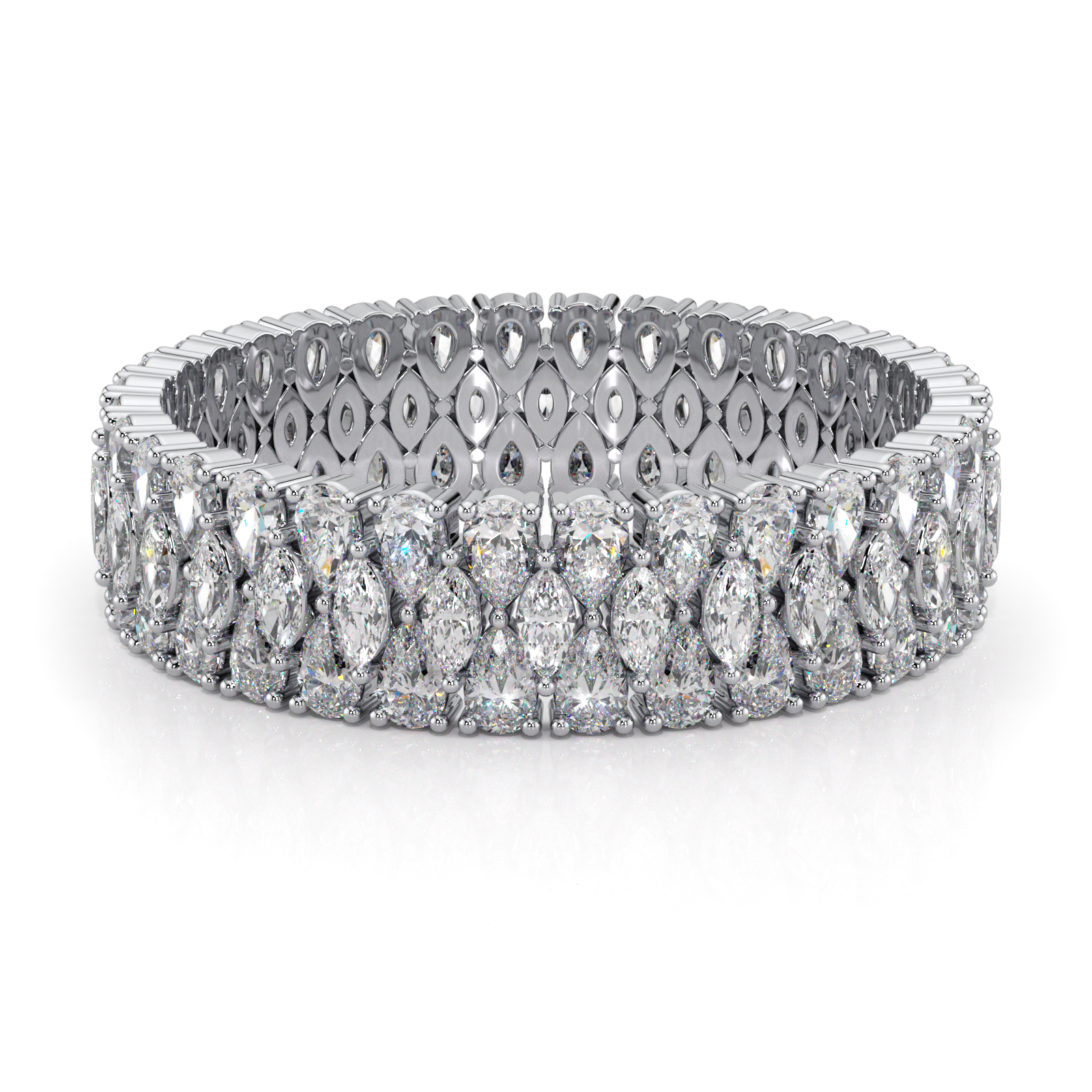 A dazzling fusion of shape and brilliance. Serena features a striking eternity design with top and bottom row of pear and middle row marquise lab-grown diamonds, meticulously set to maximize sparkle from every angle.