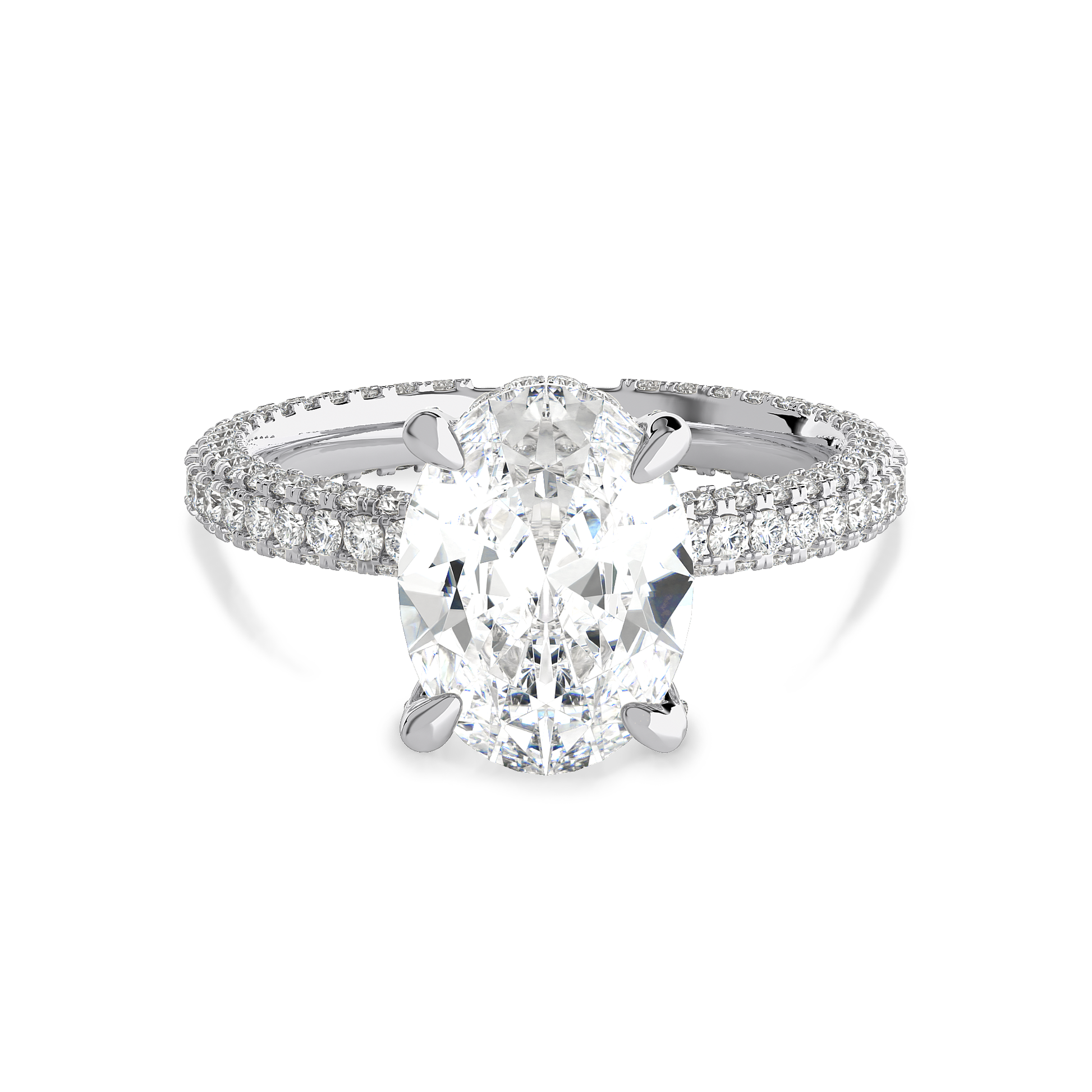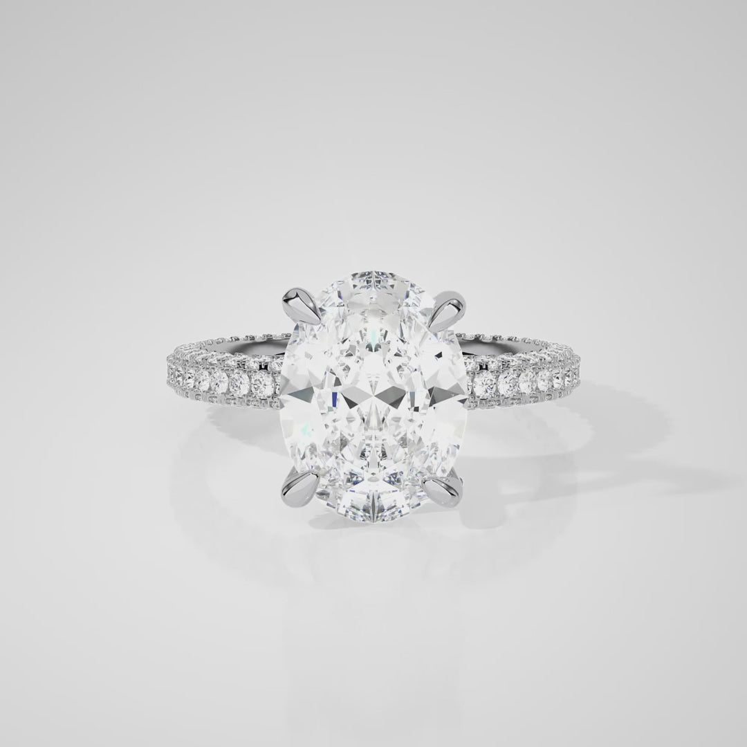 Introducing our breathtaking Stephanie Ring, a mesmerizing symbol of timeless elegance and sophistication. This stunning ring features a Oval lab-grown diamond, delicately set on a custom micro pave setting adorned with over 150 diamonds.