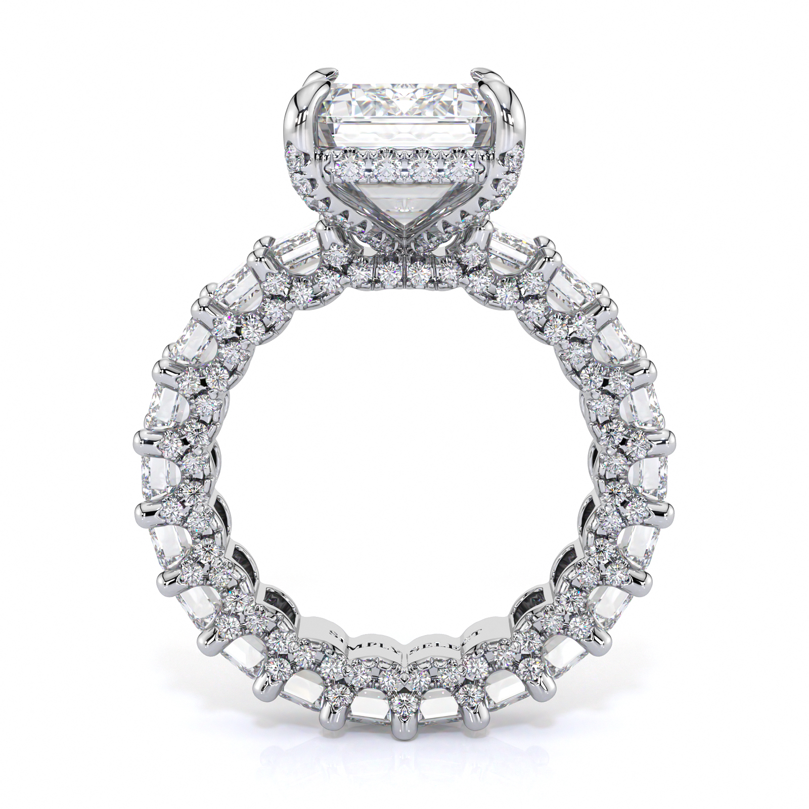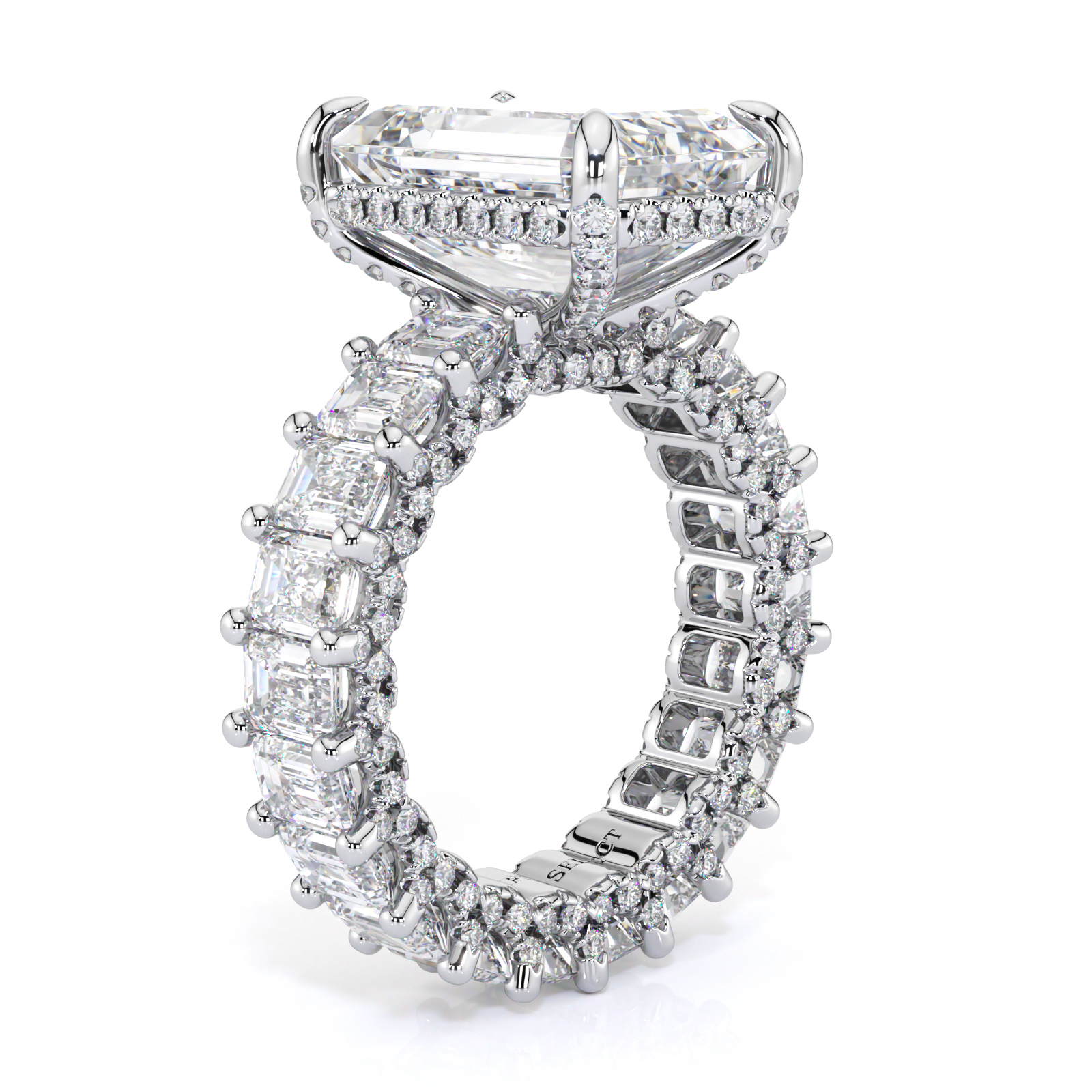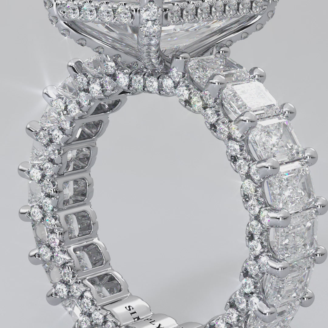With a total weight of 4CT, each emerald in the setting is .20CT, all boasting E color VVS quality. This exquisite ring can also be made in eternity style, offering timeless beauty and luxury. Embrace the allure of the Vanessa Ring and make a statement of enduring love and style.